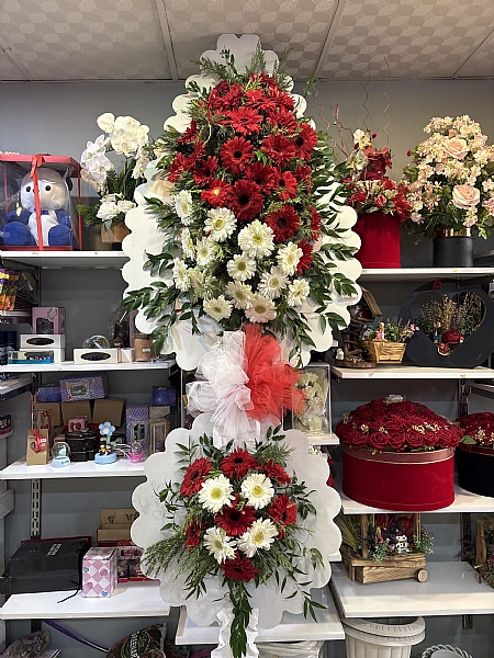 VIP çelenk modelleri, özel törenlerde ve açılış organizasyonlarında prestijli ve dikkat çekici bir çiçek gönderimi yapmak isteyenler için hazırlanan lüks çelenk tasarımlarıdır. Zarem Çiçekçilik tarafından profesyonel floristler eşliğinde hazırlanan VIP çelenkler; taze gerbera, papatya ve dekoratif yeşillikler kullanılarak büyük ve dolgun formda tasarlanmaktadır.